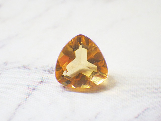 シトリンのルース(裸石)です。 濃いイエローの色合いとカットによる輝きが美しいルースです。 サイズ:約7.5×7.5×4.5mm(1.45ct)