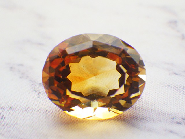 シトリンのルースです。 大きめのシトリンのカットルースです。 厚みがある為、光の反射がとても綺麗です。 ハチミツ色の美しいピースになります。 サイズ:12×10×7.5mm(5.08ct)
