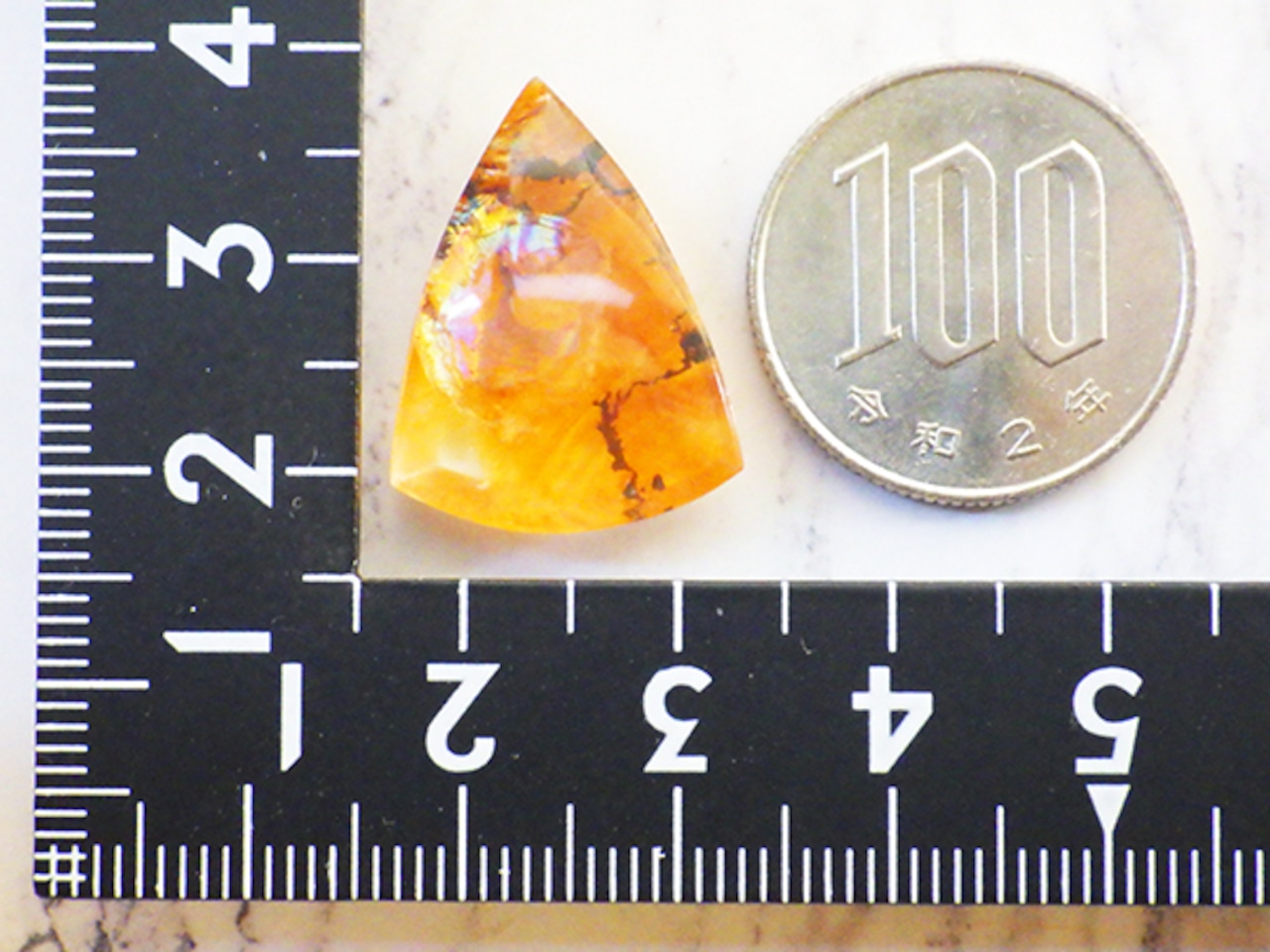 絵画の様に入るデンドライトに虹が浮かぶ幻想的な印象のピースです。