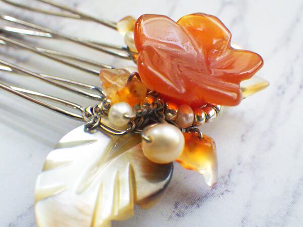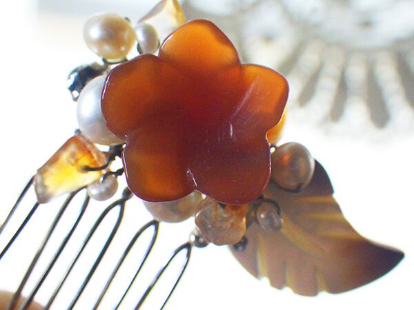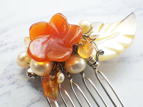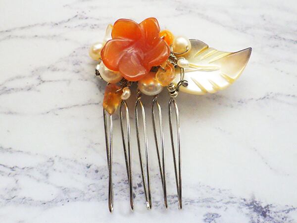 赤いメノウの花を小さなヘアコームに仕上げました。