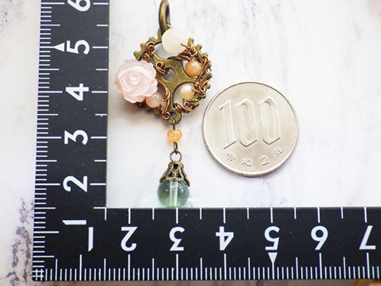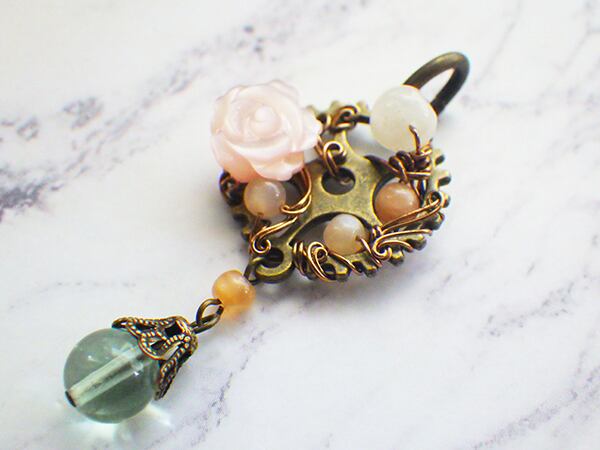 クラシカルな色の歯車にピンク色のバラやビーズが色を添えます。