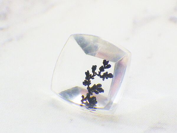 インクルージョンを楽しむタイプの石は大きなピースになりがちですが、珍しい小さいサイズのルースになります。