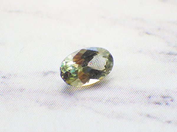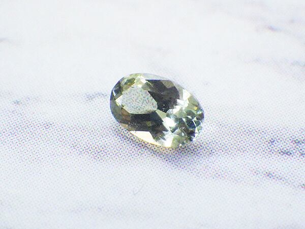 薄い落ち着いた色のグリーンとカットによる輝きが美しいルースです。