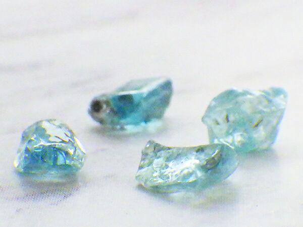 カンボジア産のブルージルコンの原石、4個セットです。