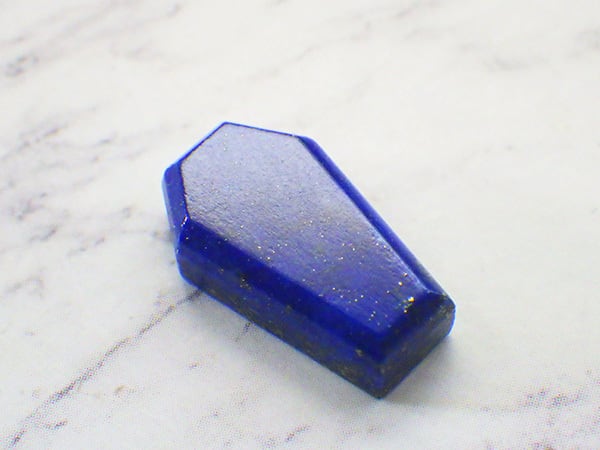 ラピスラズリで作った棺桶型のルース(裸石)です。
