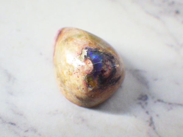 オパール層からキラリと覗く游色が美しいカンテラオパールのルースです。