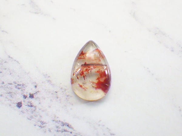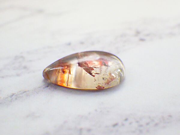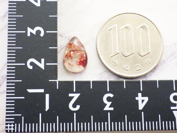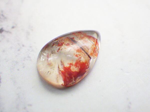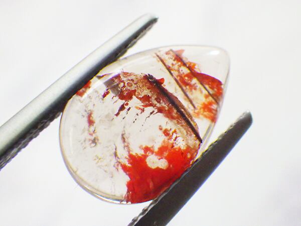 スッと入ったルチルと真っ赤なリモナイトが個性的なルースです。