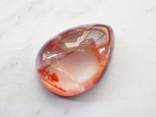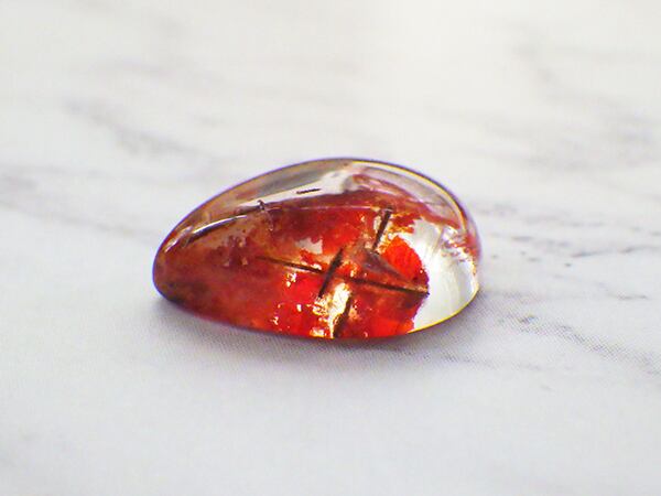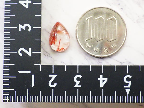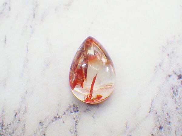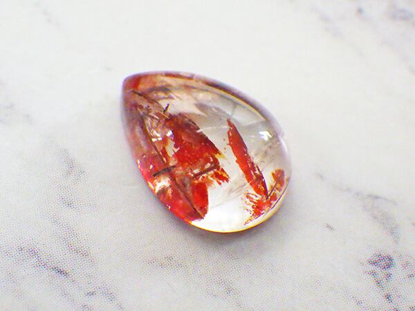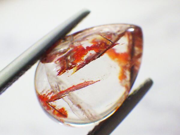スッと入ったルチルと真っ赤なリモナイトが個性的なルースです。