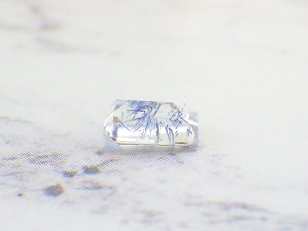 スッキリとした透明度の高い水晶にブルーのインクルージョンが入る美しいルースです。