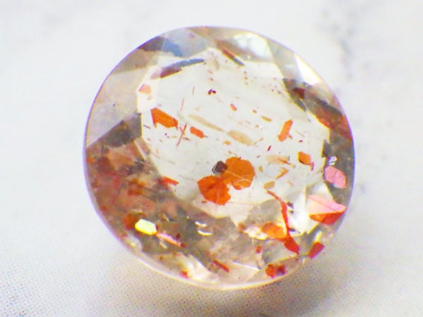 大きめのファセットカットで光の角度によって虹が出たりと変化の楽しめるルースになります。