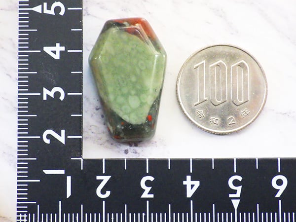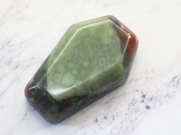 ブラッドストーンで作った棺桶型のルース(裸石)です。