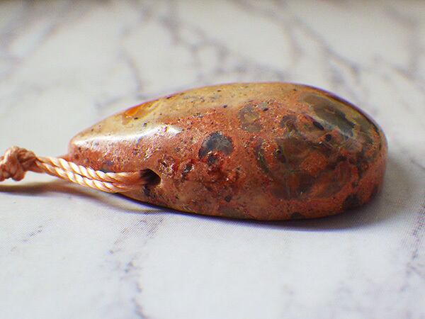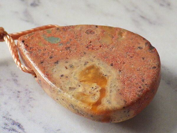 石の左側に入ったオパール層に赤とグリーンの游色がチラチラと現れるカンテラオパールのルースです。