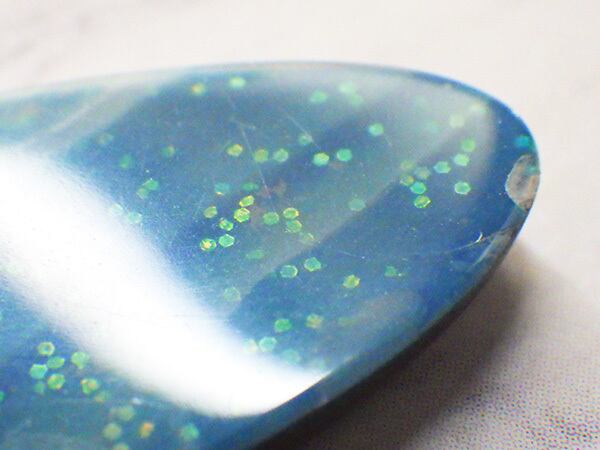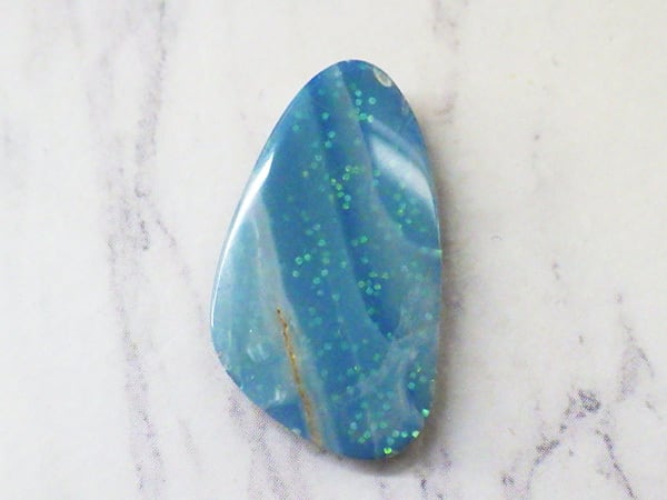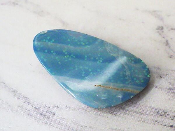 ダブレットオパールは天然のオパールとプラスチックや木を貼り合わせて作る加工オパールです。