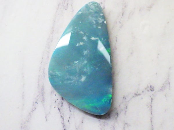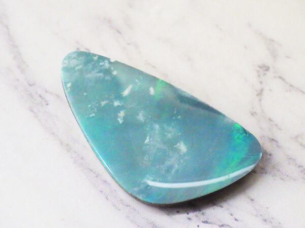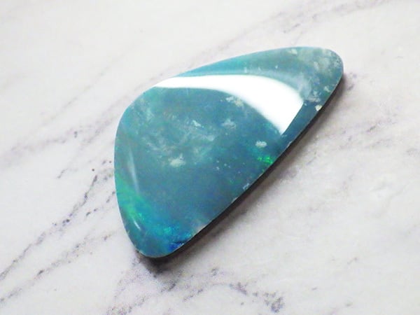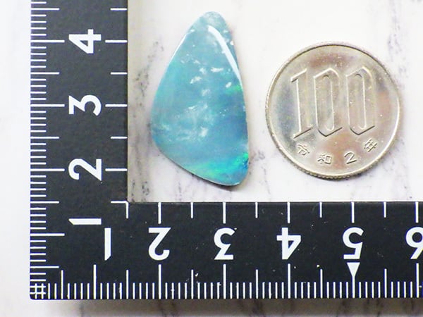 ダブレットオパールは天然のオパールとプラスチックや木を貼り合わせて作る加工オパールです。