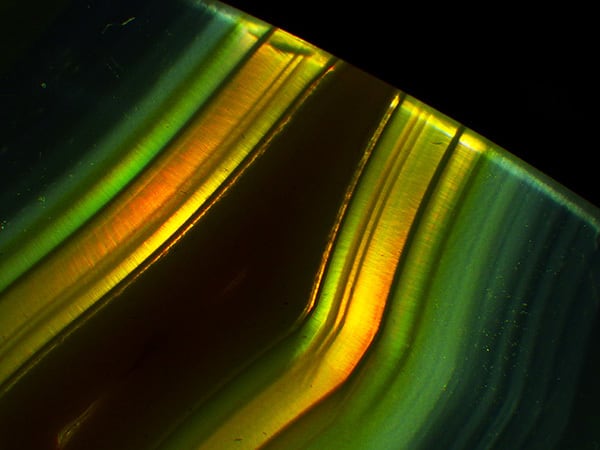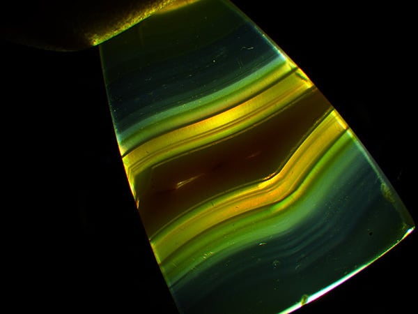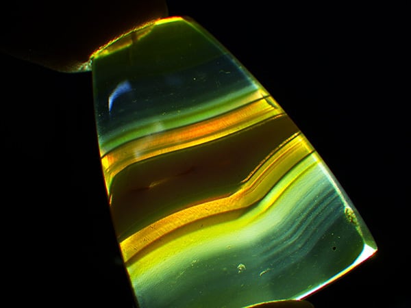 縞の綺麗な可愛らしいアゲートですが、光の当て方で縞の間に虹が浮かび上がります。