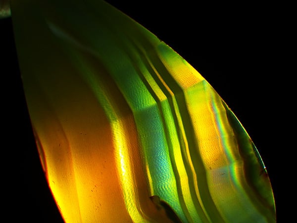 厚みが薄い方が虹が浮かびやすい為、薄くなりがちなルースですが、今回のピースは比較的あ厚みがある方だと思います。