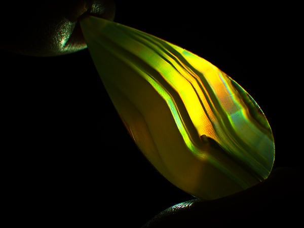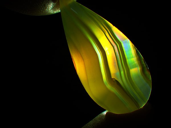 縞の綺麗な可愛らしいアゲートですが、光の当て方で縞の間に虹が浮かび上がります。