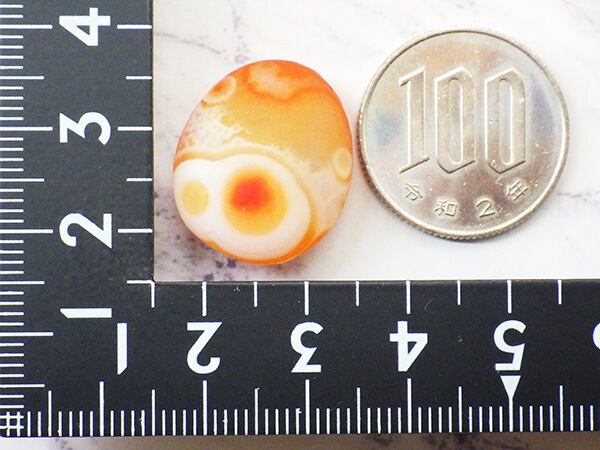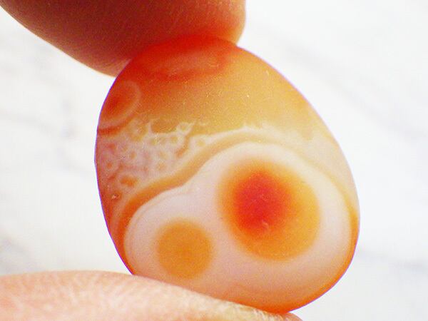 目玉焼きの様な模様の面白いアゲートのタンブルです。