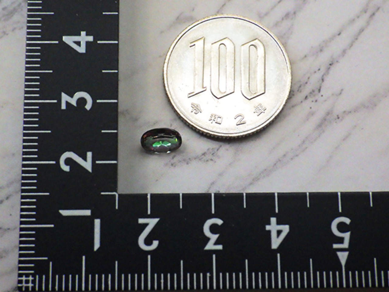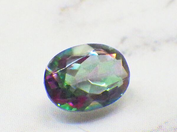 ファセットカットのルースにチタンで蒸着された綺麗なルースです。